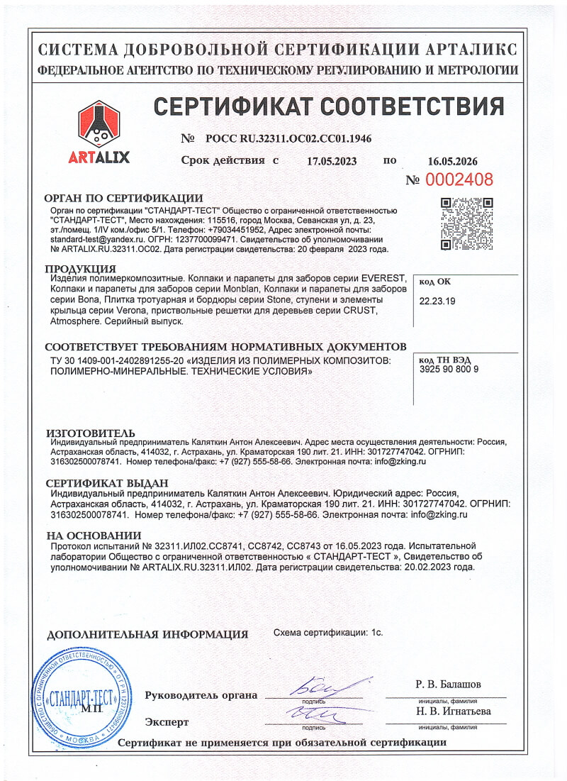Сертификаты соответствия ZKING для Белогорска